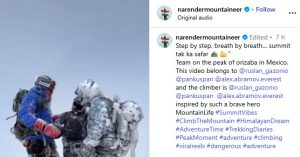 Sharing the achievement on Instagram, Narendra Kumar captured the spirit of the expedition with the words: “Step by step, breathe by breath… summit tak ka safar.”