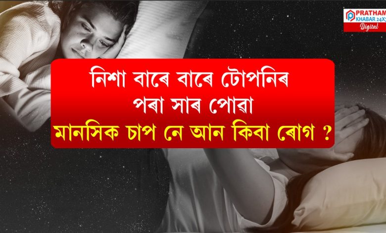 পৰিৱৰ্তিত জীৱনশৈলী, মোবাইল চোৱা, দৈনন্দিন কাম-কাজৰ ব্যস্ততা, কৰ্মৰ লগত জড়িত চাপ আদিৰ বাবে টোপনি কম হ’ব পাৰে। তদুপৰি গভীৰ নিশালৈ সাৰে থকা আৰু খাদ্যাভ্যাসৰ বেয়া অভ্যাসে টোপনিৰ ধৰণত ব্যাঘাত জন্মাব পাৰে। যদি এই সমস্যা দীৰ্ঘদিন ধৰি চলি থাকে তেন্তে ইয়াক সহজভাৱে ল’ব নালাগে। ইয়াৰ জৰিয়তে শৰীৰে প্ৰায়ে ইংগিত দিয়ে যে আপোনাক জিৰণি আৰু ভাৰসাম্যৰ প্ৰয়োজন। চিকিৎসকৰ মতে ৰাতি বাৰে বাৰে সাৰ পোৱাৰ কেইবাটাও অন্তৰ্নিহিত কাৰণ থাকিব পাৰে। কেতিয়াবা দিনৰ ভাগৰ বা অস্বাস্থ্যকৰ পৰিৱেশ ইয়াৰ কাৰণ হ’ব পাৰে। লগতে উদ্বেগ বা মানসিক চাপে টোপনিৰ ক্ষেত্ৰত যথেষ্ট বাধাৰ সৃষ্টি কৰিব পাৰে।